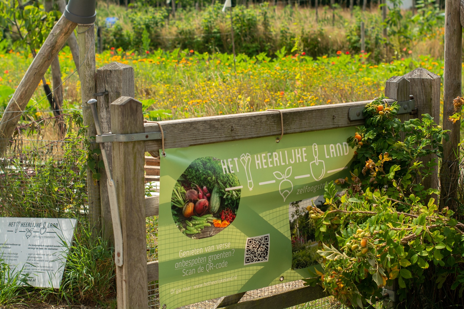 Daartegenover staat dat de tuinders zich er maximaal inspannen voor de teelt. Zo heb je van mei tot december verse groenten direct van het land. Wij telen ruim 100 verschillende gewassen, en een ruime diversiteit aan kruiden. Aardbeien en ander kleinfruit horen ook bij de oogst, en voor een donatie pluk je een bosje bloemen erbij.